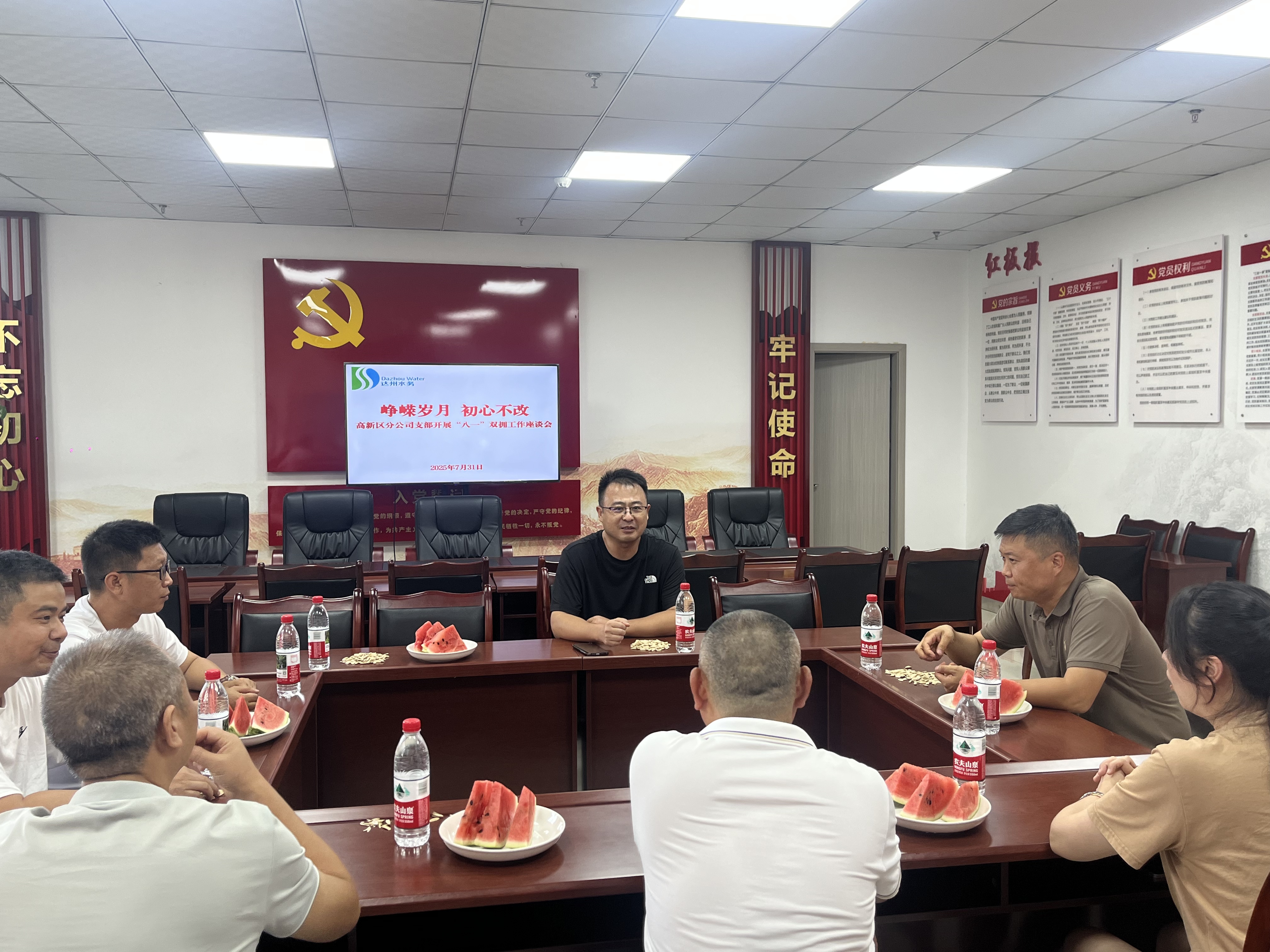 集團上下掀起擁軍慰問熱潮,為 153 名退役軍人和 6 名軍屬送去節(jié)日慰問與美好祝福,將組織的關(guān)懷精準(zhǔn)送達(dá)。黨委書記、董事長盧輝帶隊走訪慰問供水生產(chǎn)中心部分退役軍人代表,與他們親切交流,感謝他們?yōu)閲液蜕鐣鞒龅呢暙I(xiàn),高度贊揚他們?nèi)肼氁詠硎冀K堅守軍人本色,尤其在高溫酷暑的嚴(yán)峻 “烤” 驗下,始終堅守崗位、無懼辛勞,用汗水為城市供水安全筑牢了堅實防線。